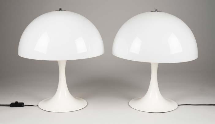 Aluminium lackiert, Kunststoff weiß. H. 58 cm, D. 50 cm. Jeweils m. Herstelleretikett bez. Diffusor teilw. verkratzt, Lackierung min. best., part. kl. Flecken, jew. 2-flg. elektrifiziert.