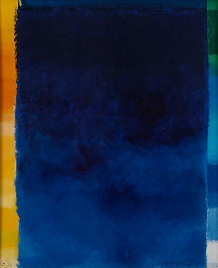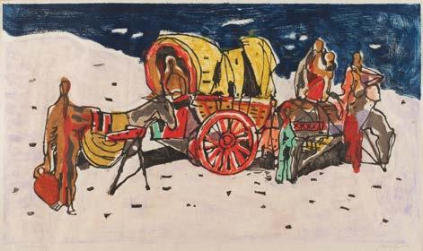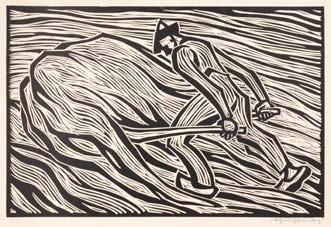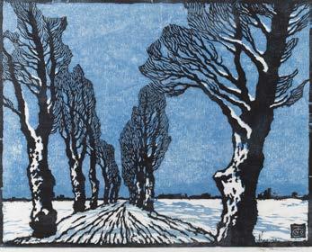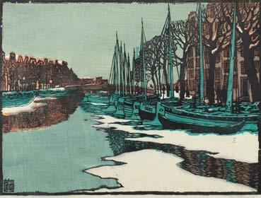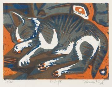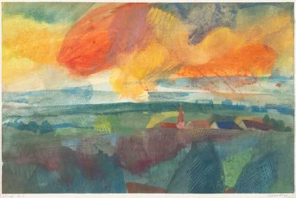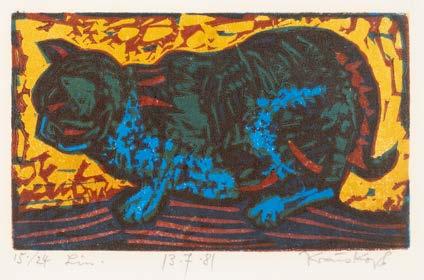 Farbholzschnitt. DM 40,5 x 54,5 cm (R. 61,5 x 81,5 x 2,5 cm). Unten rechts handsigniert sowie im Druck monogrammiert und datiert. Part. min. mit Knickspur, leicht fleckig. Im Passepartout und hinter Glas gerahmt (ungeöffnet).