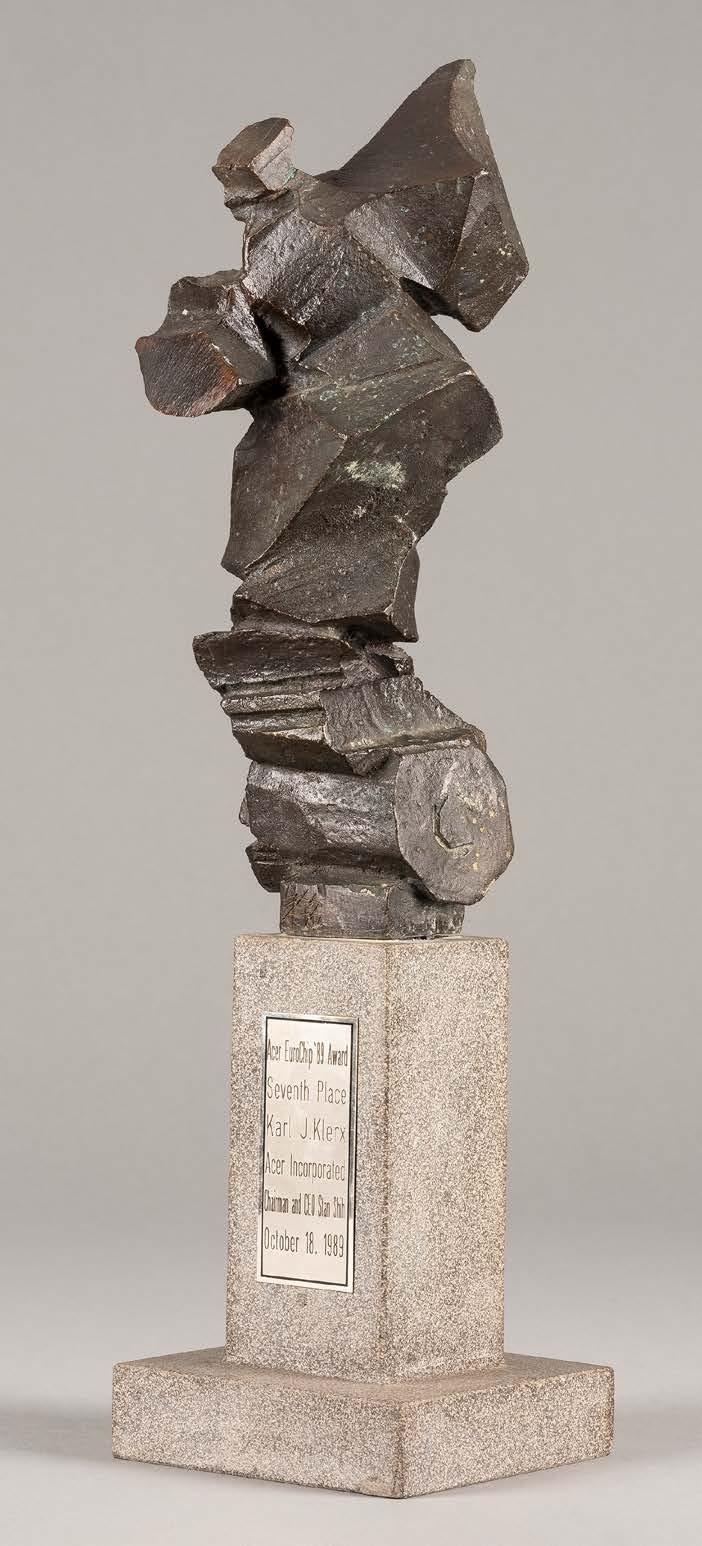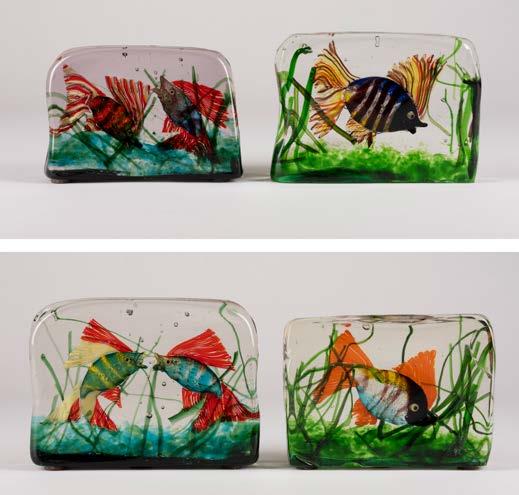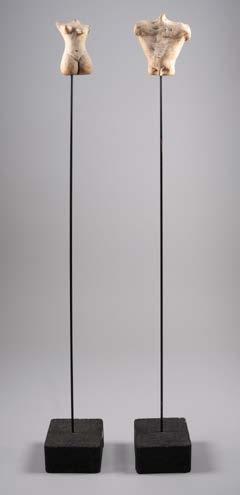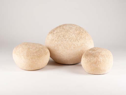 Glasfaserverstärktes Polyester u. Marmorpulver, Aluminiumblech, jew. einflg. elektrifiziert. H. 14,5 - 25 cm, D. ca. 18 - 28 cm. Unterseitig m. Etikett bez. Leichte Gebrauchsspuren.