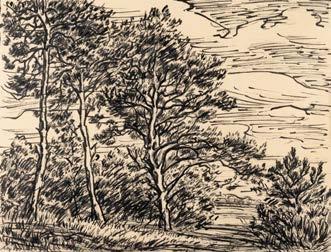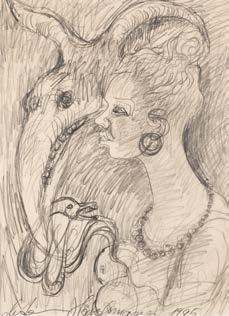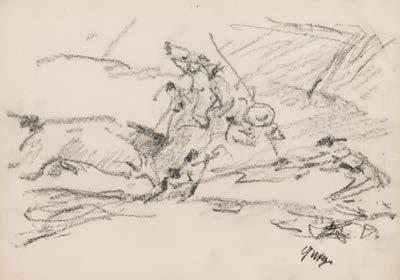 Bleistift und Feder auf Papier. BM 32 x 25,5 cm (Passepartout 40 x 30 cm). Unten rechts handsigniert. An den Rändern minimalst verschm. Im Passepartout montiert.