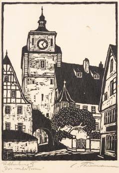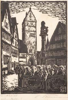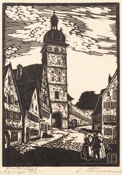 Holzschnitt auf feinem Velin. BM max. ca. 25 x 18 cm (Passepartout 35 x 25 cm). Jew. unten rechts mit Bleistift handsigniert sowie unten links bez. Mit Ansichten ‚Dinkelsbühl‘, ‚Dinkelsbühl s egringer Tor‘, ‚Dinkelsbühl Wörnitztal‘ und ‚Rothenburg oT ‚Der Weisse Turm‘. Min. gebräunt, part. leicht stockfleckig, part. mit Knickspuren, ein Passepartout part. besch. und verschm. Jew. im Passepartout montiert.