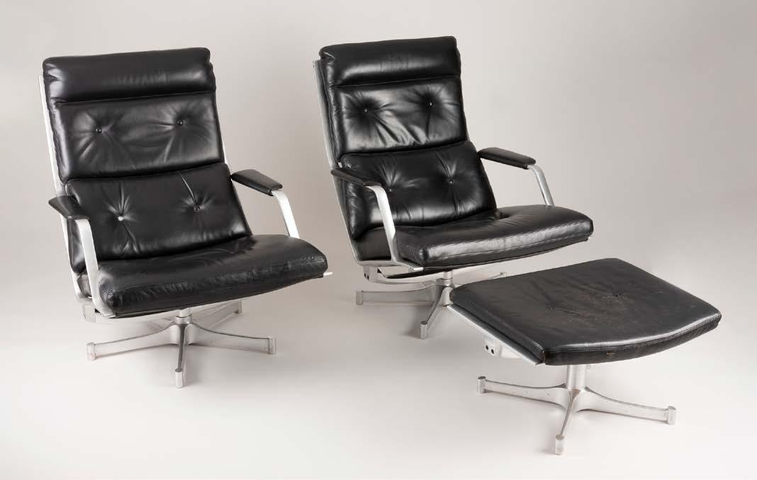 PAAR SESSEL / LOUNGE CHAIRS UND EIN FUSSHOCKER MODELL ‚FK 85‘