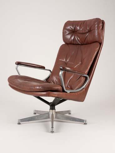 Aluminiumguss, Lederbezug braun, s essel drehbar. H. 94 cm, B. 72 cm, T. 86 cm