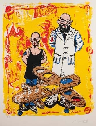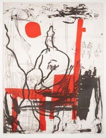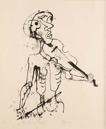 Lithografie auf Velin. sM 46 x 35 cm (R. 70 x 59 x 3 cm). Unten mittig handsigniert sowie im Druck signiert und datiert. Leicht gebräunt, part. mit Knickspuren, leicht stockfleckig. Hinter Glas gerahmt (ungeöffnet).