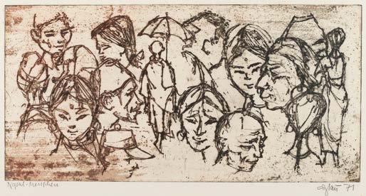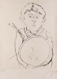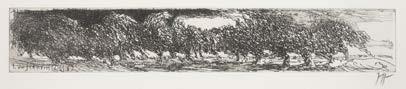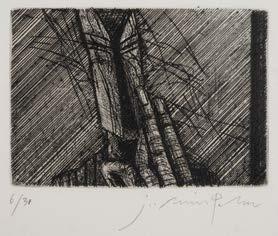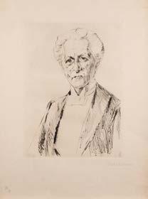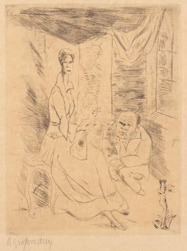 Kaltnadelradierung auf JW Zanders, mit Wasserzeichen. DM 19,5 x 23,5 cm, BM 34 x 36,5 cm. Unten links handsigniert. Verso: Mit Kleberückständen. Gebräunt, part. fleckig, Lichtrandig, min. stockfleckig.