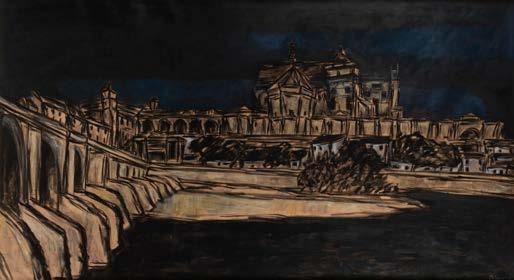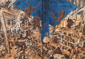 Lithografie auf dünnem Papier. BM 50 x 34,5 cm. Unten rechts handsigniert. Mit Knickspuren, an den Rändern besch., part. fleckig, leicht gebräunt.