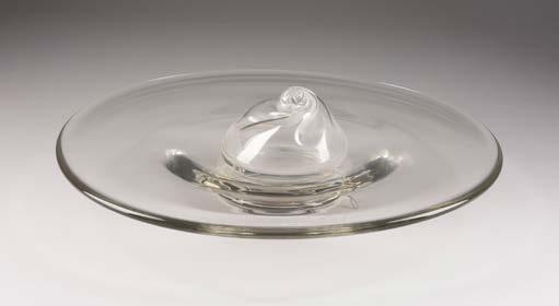 Glas, Untergestell Metall, goldfarbig gefasst. H. 46,5 cm, D. 52 cm. Ein Tisch dieser Art wurde von Coco Chanel für die Einrichtung Ihres Apartments in der Rue Cambon ausgewählt. Glasplatte min. best., part. m. Kratzspuren.