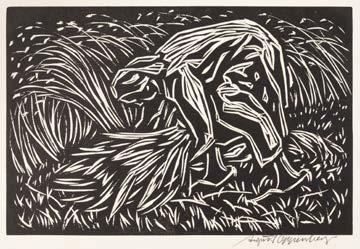Farbholzschnitt. sM 41 x 50 cm (R. 63 x 70 cm). Unten rechts handsigniert sowie im Druck monogrammiert und datiert. Part. min. stockfleckig. Im Passepartout montiert und hinter Glas gerahmt (ungeöffnet).