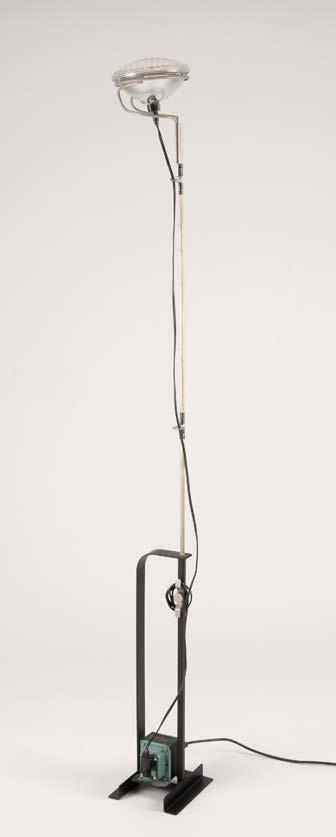 Metall lackiert, vernickelt, 1-flg. elektrifiziert. H. 155 - 190 cm, D. ca. 21 cm. Mehrfach bez. Leichte Gebrauchs- u. Alterungsspuren.
