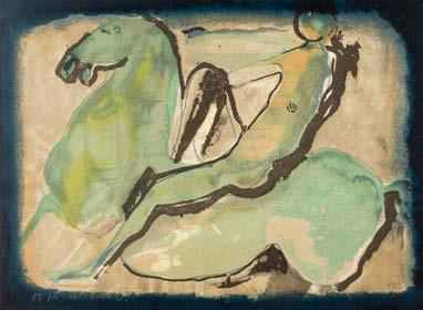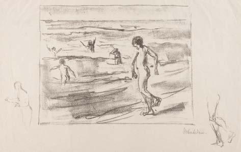 Lithografie auf dünnem Papier. BM 31 x 37,5 cm. Unten rechts handsigniert. Mit Knickspuren, Ränder besch., part. am Rand fleckig.
