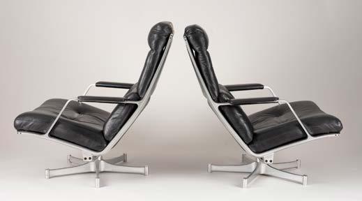 Aluminiumguss, Lederbezug schwarz, s essel drehbar. H. ca. 92 cm, B. 72 cm, T. ca. 86 cm - H. 36 cm, B. Leichte Gebrauchsspuren, etwas verschm., Leder teilw. min. besch., o berflächen m. Kratzspuren.