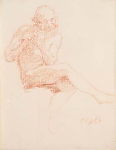 Rötel auf Büttenpapier. 31 x 24 cm. Unten rechts monogrammiert ‚P. P. d. Ch.‘ sowie mit Bleistift (von fremder Hand) bez. ‚Chavannes‘. Verso: (sammlungs-) stempel. Leicht gebräunt, min. fleckig, leichte Knickspuren. In ein Passepartout montiert.