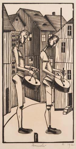 Holzschnitt auf Velin. DM 23,7 x 8,9 cm, BM 28,6 x 21,4 cmw (R. 44,5 x 33,5 x 1,5 cm). Unter der Darstellung typografisch bez. ‚H. Campendonk‘ u. ‚originalholzschnitt‘. Verso: Mit Kleberückständen. Leicht gebräunt, an den Rändern min. besch. Im Passepartout montiert und hinter Glas gerahmt. Literatur: Engels 25, söhn HDo III 31608-1.