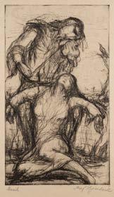 s trichätzung, Kaltnadel, Aquatinta bzw. Pinselätzung und schmirgel Kupferdruckpapier. DM 52,5 x 34,5 cm, BM 66 x 49,5 cm (Passepartout 80 x 60 cm). Unten links im Druck bez. ‚Käthe Kollwitz rad.‘. Ränder leicht verschm., part. ber., part. besch. Im Passepartout montiert.