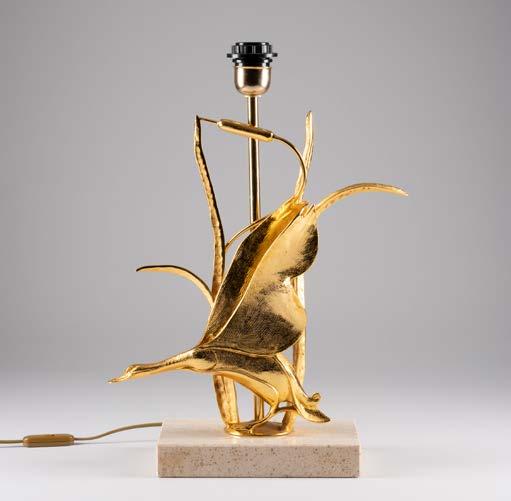 Italien, sesto Fiorentino, L‘originale Illuminazione, 2.H. 20. Jh. Metallguss, wohl vergoldet, 1-flg. elektrifiziert. H. 49 cm, B. 34 cm, T. 16 cm. Leichte Gebrauchsspuren, sockel part. leicht best.