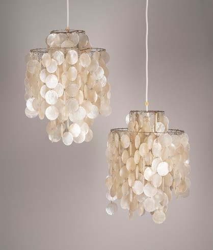 Metall verchromt, Muschelplättchen, Drahtringe, jew. 1-flg. elektrifiziert. H. 42 cm, D. ca. 30 cm, L. ca. 250 cm. Gebrauchsspuren, Metall pat., Muschelplättchen verschm., einige fehlen.