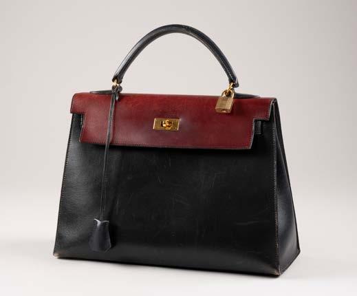 - H. 36 cm, B. 67 cm,. Unterseitig m. Herstelleretikett bez. Gebrauchsspuren, Leder pat. teilw. min. besch., verfärbt, leicht fleckig.