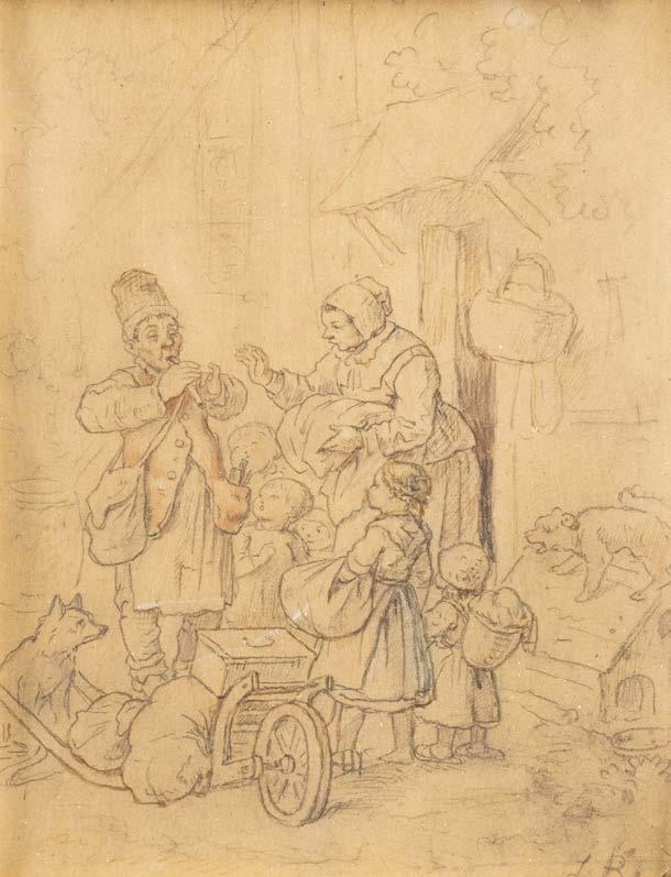 Pencil drawing, slightly heightened in sepia. Visible size 12,5 x 9,5 cm (F. 32,5 x 26,5 cm). Signed lower right ‚L. R...‘ (partly covered). Verso: label with stamp ‚Kunstverein Düsseldorf‘, and Luchtenberg collection inventory number ‚Z/n 37‘. Lightly browned. Framed behind glass in passepartout.