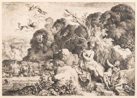 Deutsch, Anfang 19. Jh. Blei- und Buntstiftzeichnung auf Papier bzw. Radierung in Braun auf Papier. BM 32 x 21,5 cm bzw. 19 x 13,5 cm. Verso Luchtenberg Sammlungsinventarnummer ‚Z/n 46 bzw. D/z 73a‘. Gebräunt, fleckig, Knickspuren, part. verso Montierungsreste.