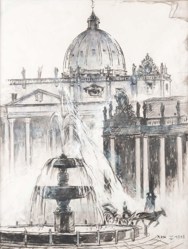 Bleistiftzeichnung, leicht in Sepia erhöht. SM 12,5 x 9,5 cm (R. 32,5 x 26,5 cm). Signiert unten rechts ‚L. R...‘ (zt. verdeckt). Verso: Etikett mit Stempel ‚Kunstverein Düsseldorf‘, sowie Luchtenberg Sammlungsinventarnummer ‚Z/n 37‘. Leicht gebräunt. Hiner Glas im Passepartout gerahmt.