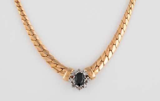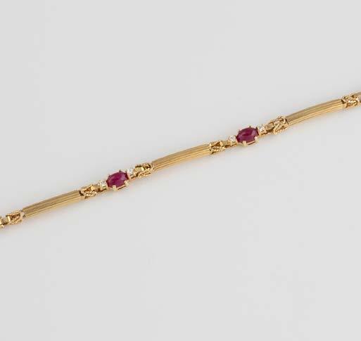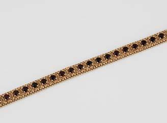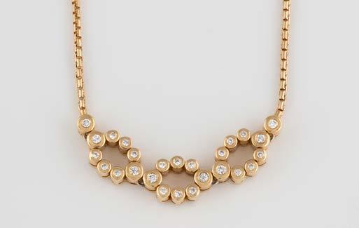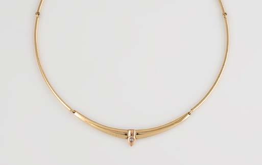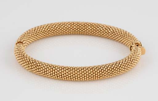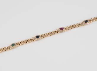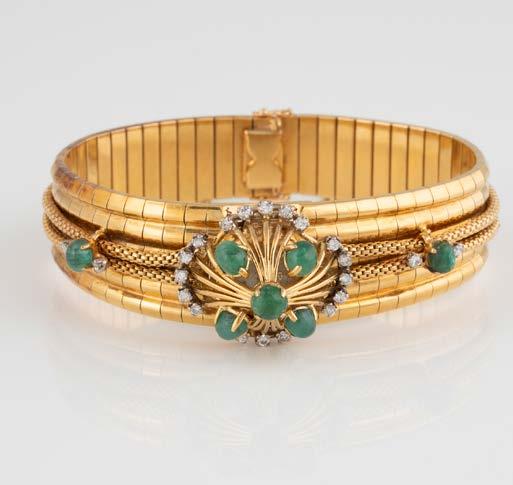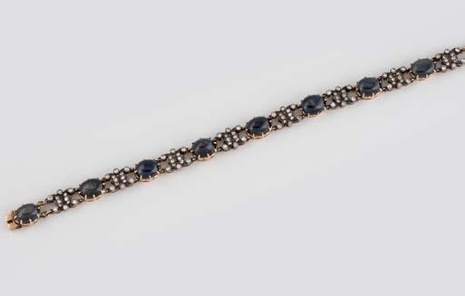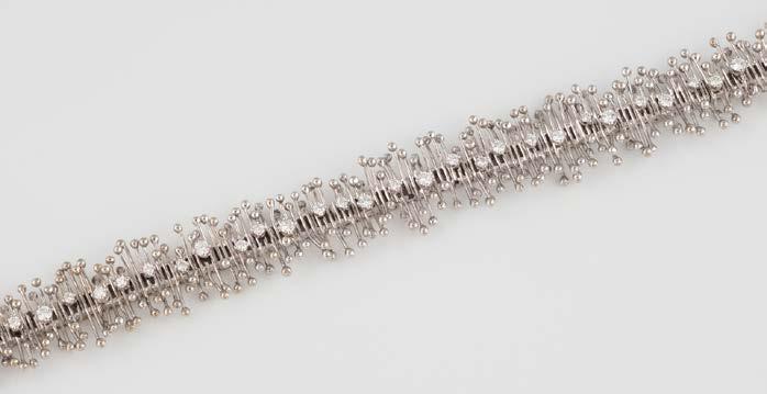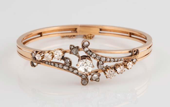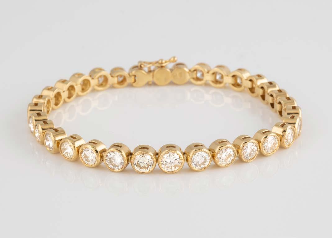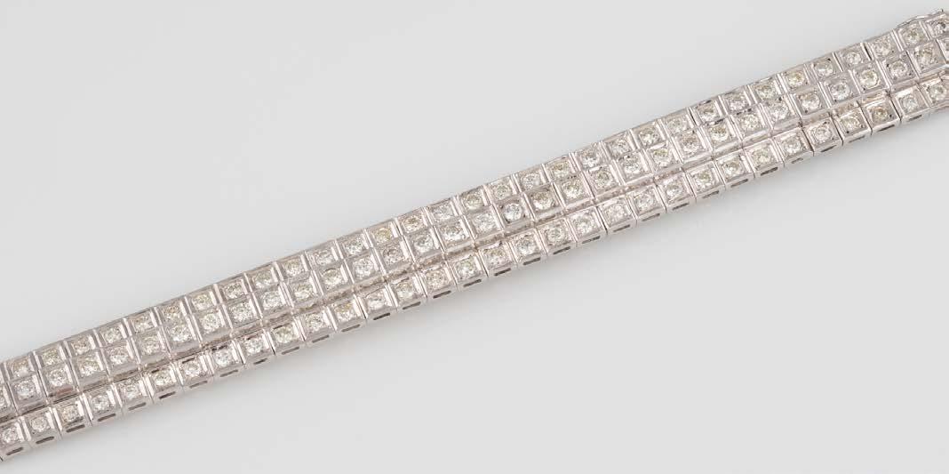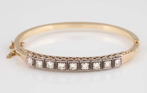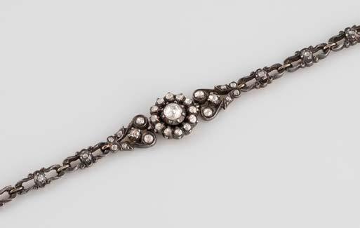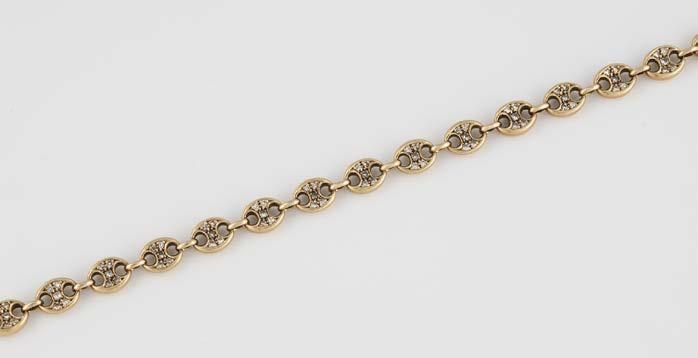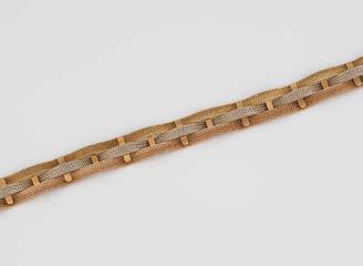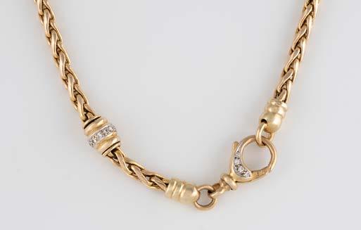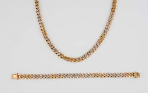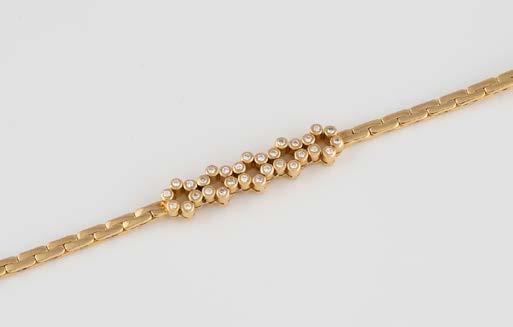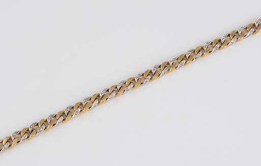 Gelbgold. L. 21 cm, Ges.-Gew. ca. 21,2 g. Gest. 585. 80 Diamanten im 8/8-Schliff, zusammen ca. 0,75 ct. Leichte Tragespuren..