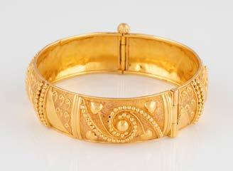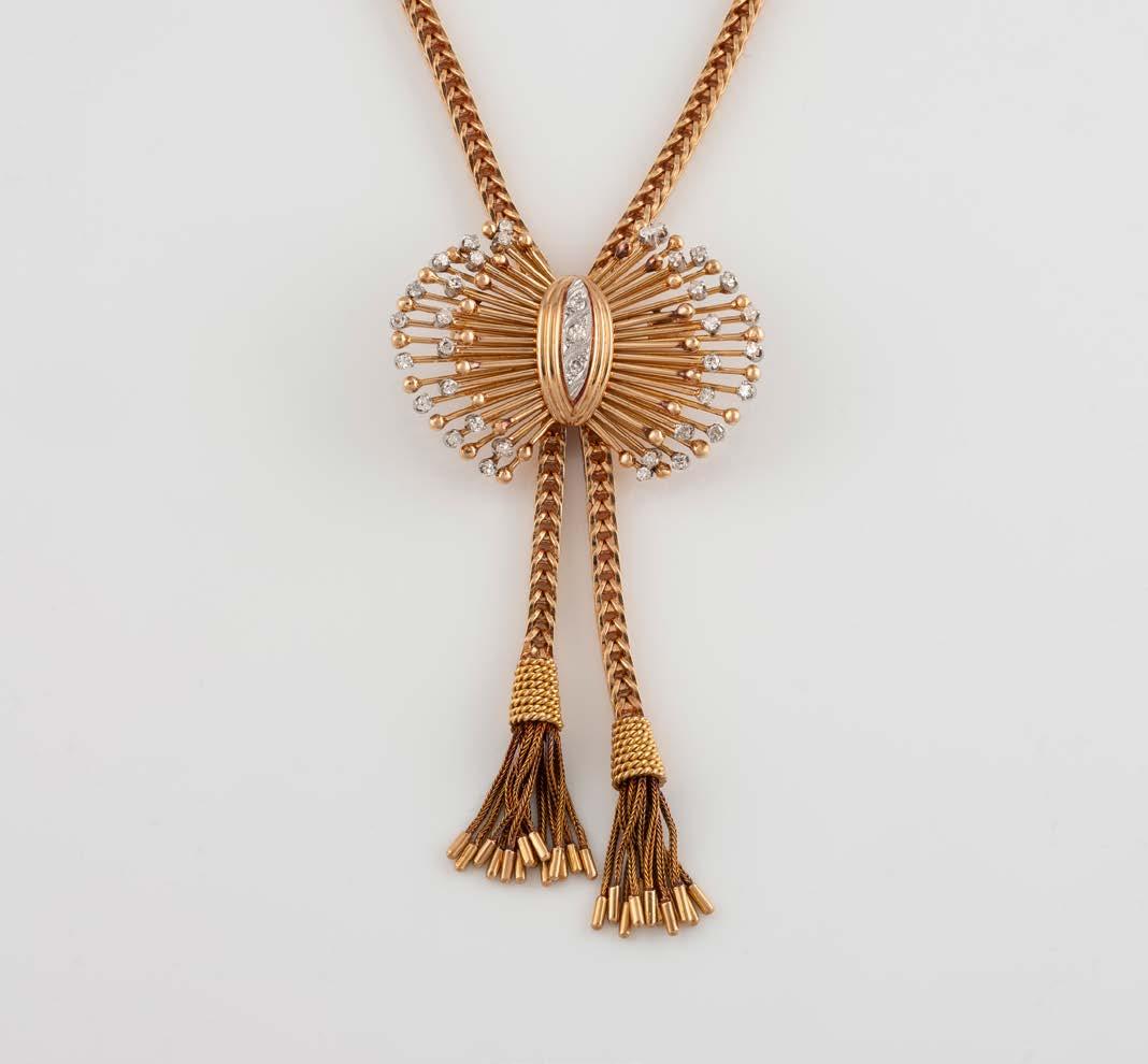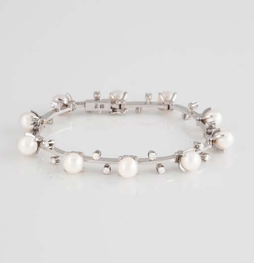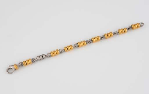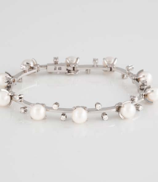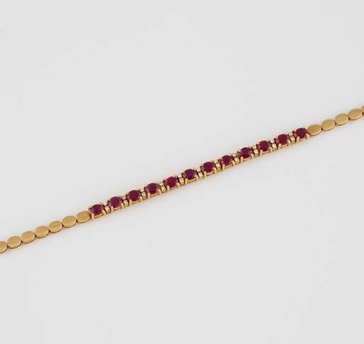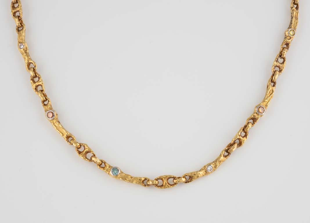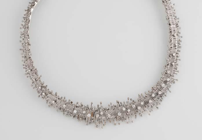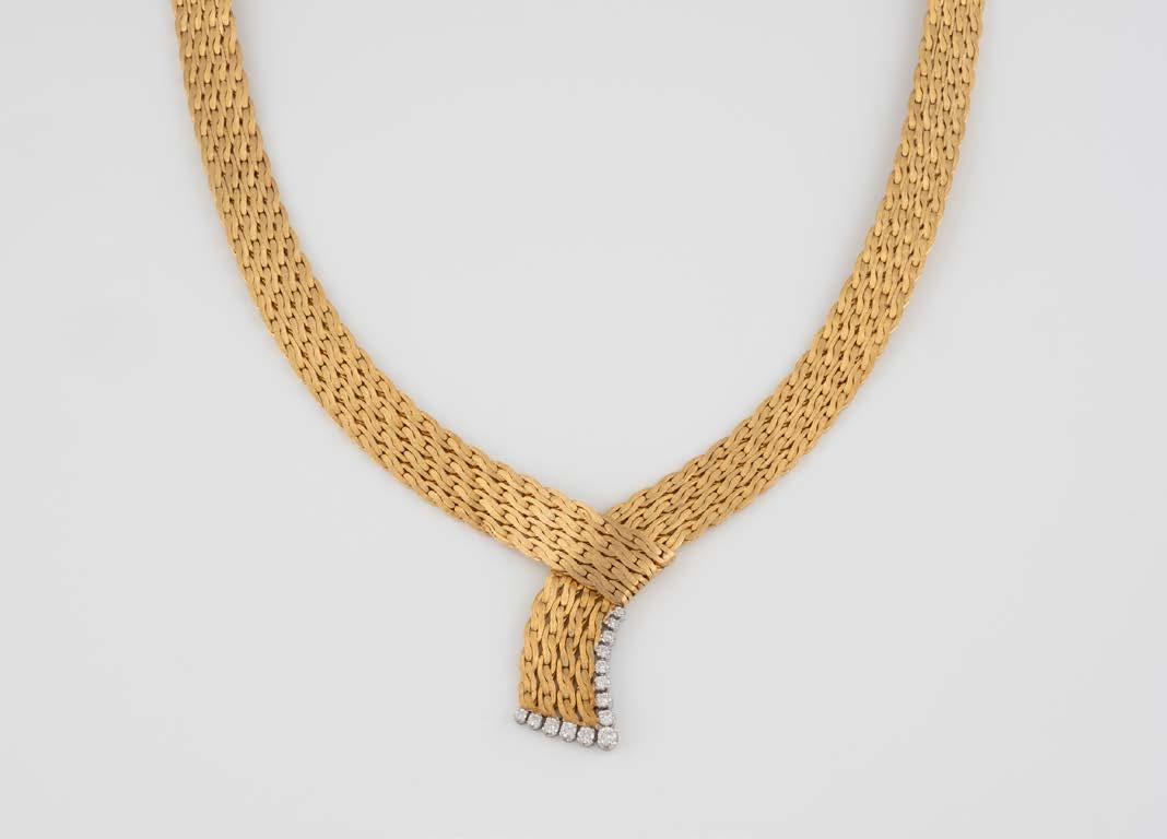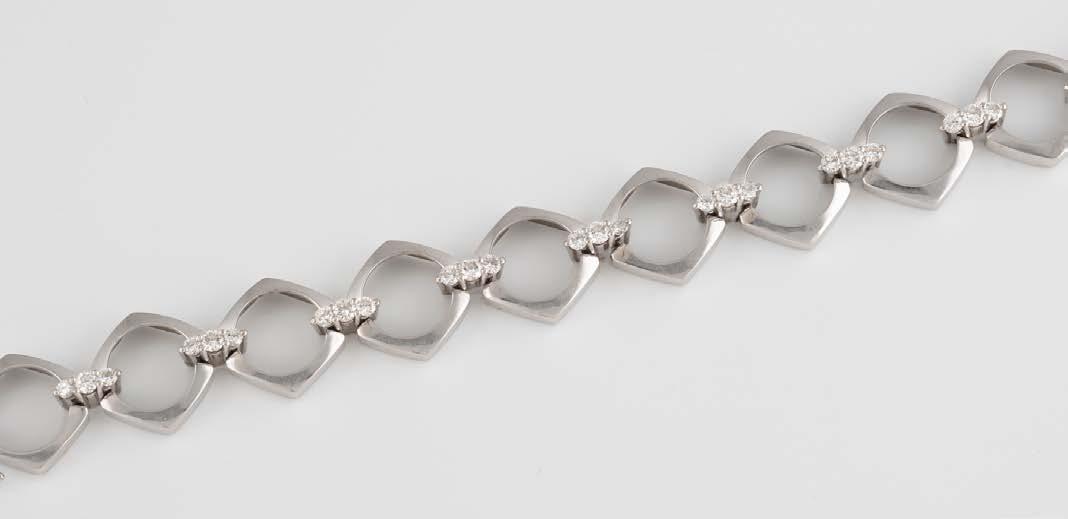 Gelbgold. L. 21 cm, Ges.-Gew. ca. 21,2 g. Gest. 585. 80 Diamanten im 8/8-Schliff, zusammen ca. 0,75 ct. Leichte Tragespuren..