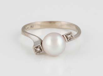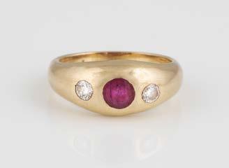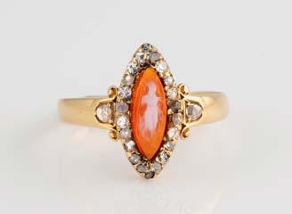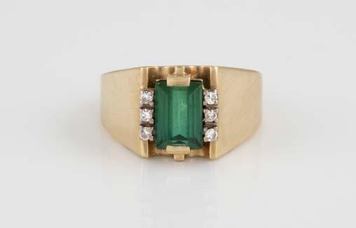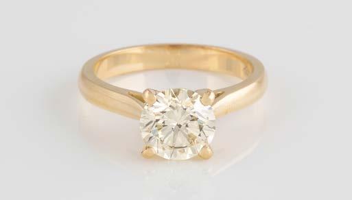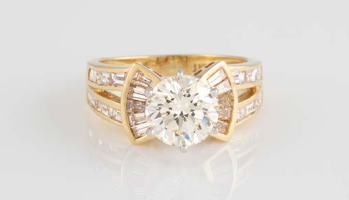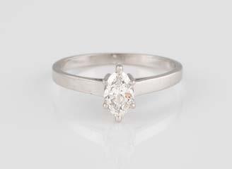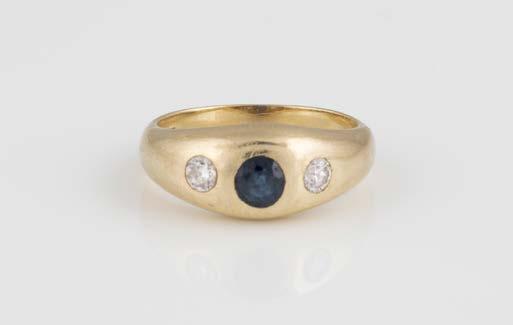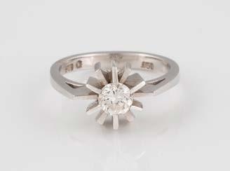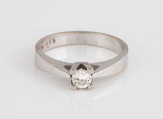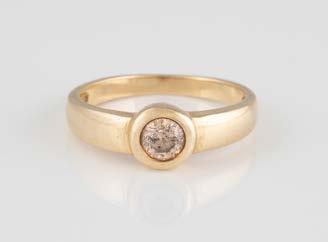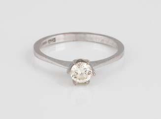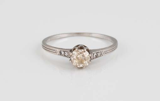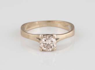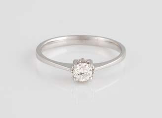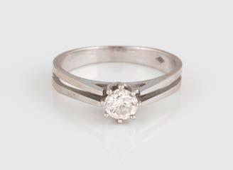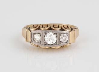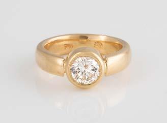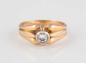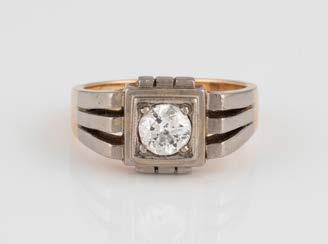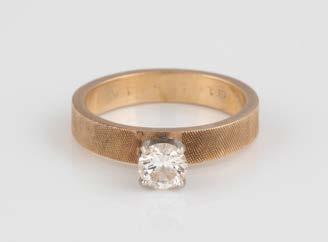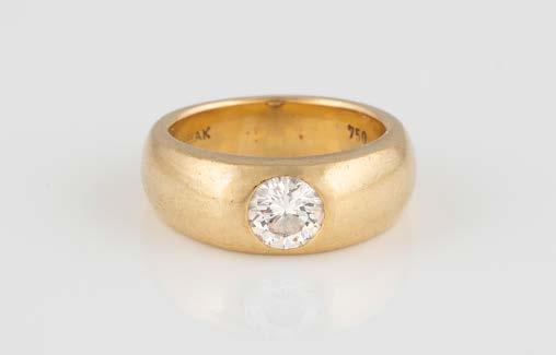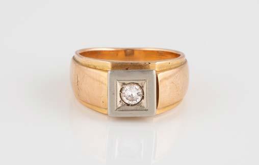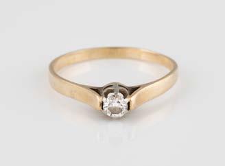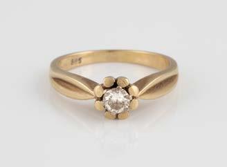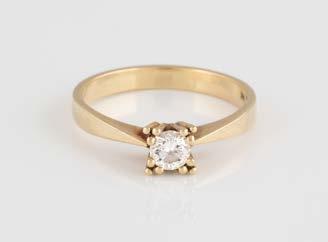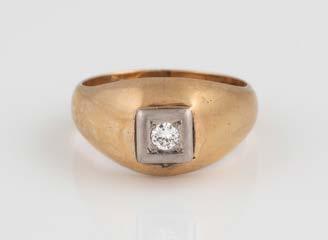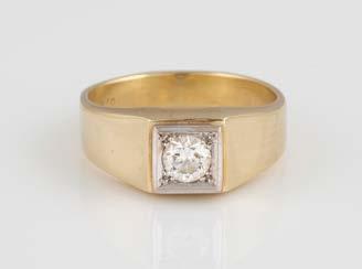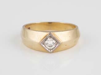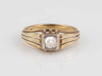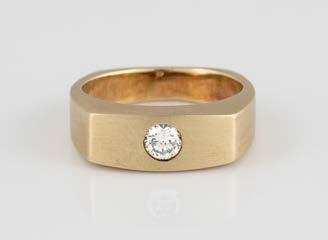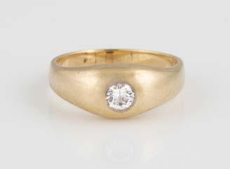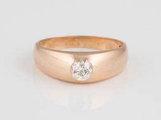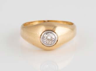 Gelbgold. Ringmaß ca. 54, Ges.-Gew. ca. 7,8 g. Gest. 585. Ein Brillant, ca. 0,50 ct.