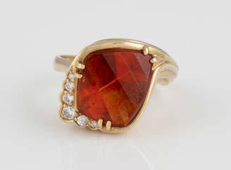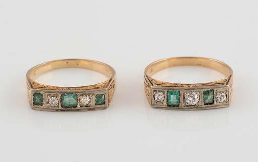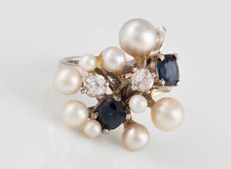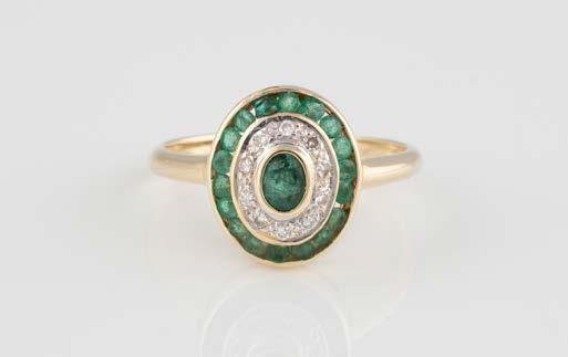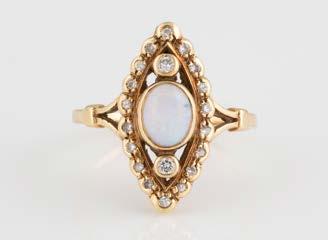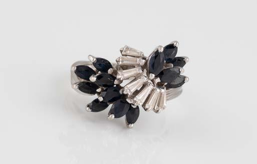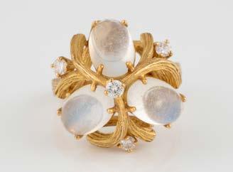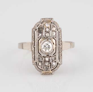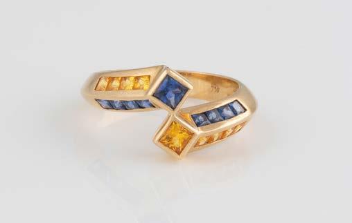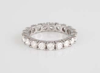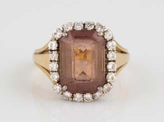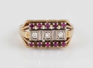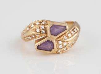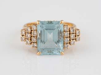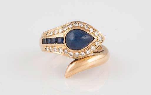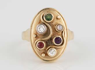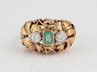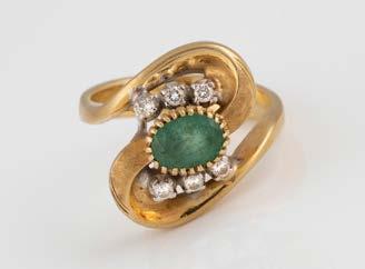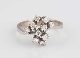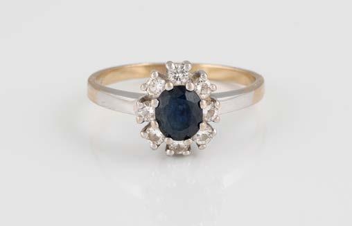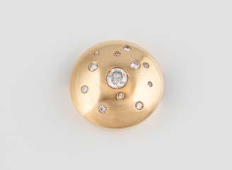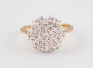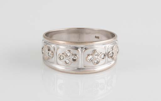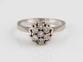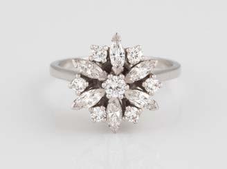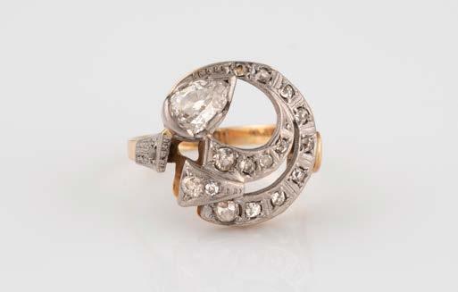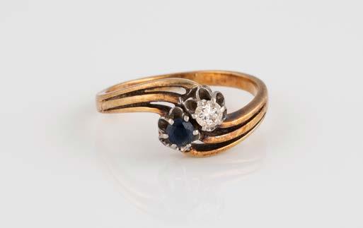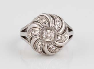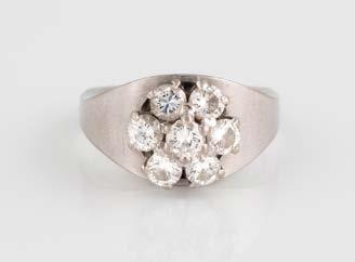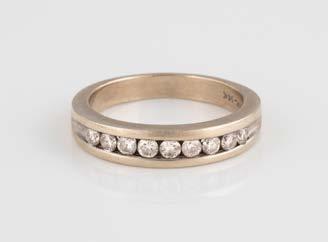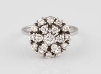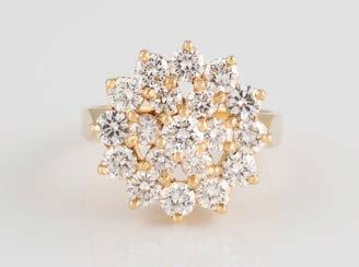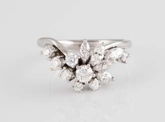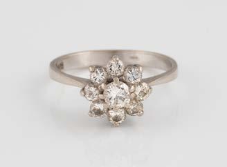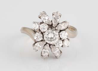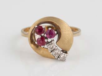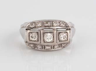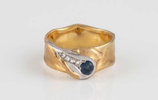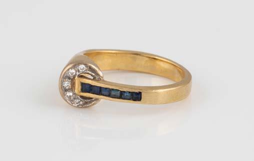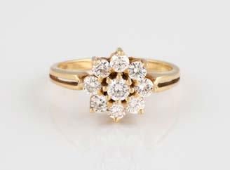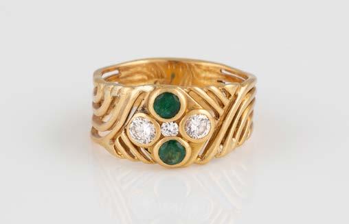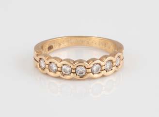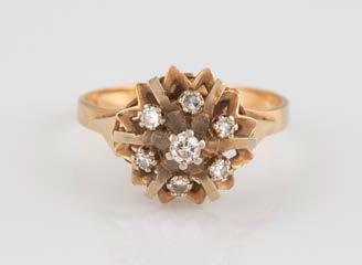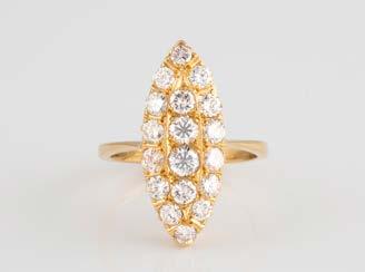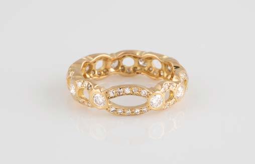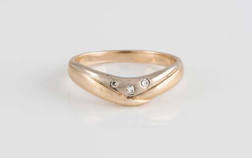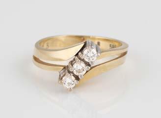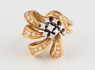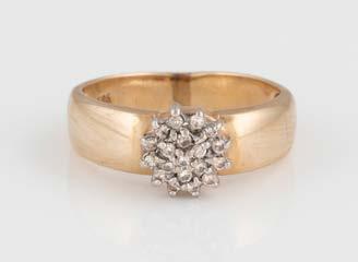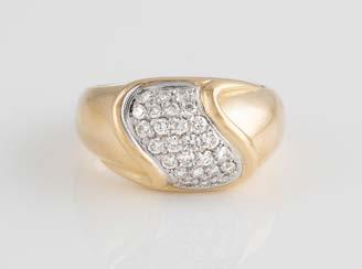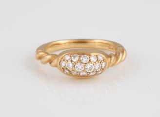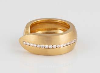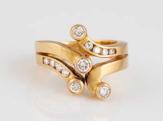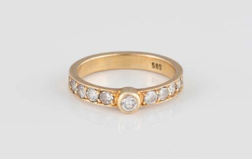 Gelbgold. Ringmaß ca. 56,5, Ges.-Gew. ca. 5,7 g. Gest. 585, Herstellersignet Werner Zappe, Pforzheim. 16 Brillanten, zusammen ca. 0,56 ct.