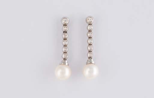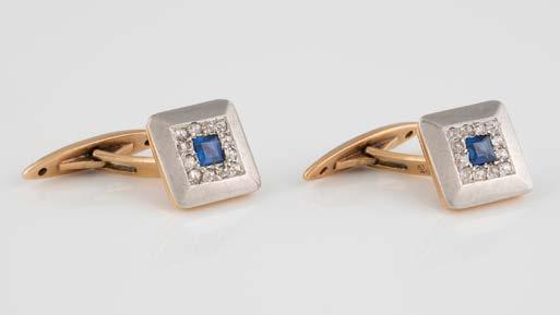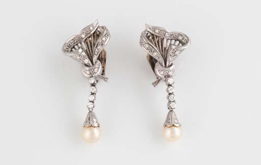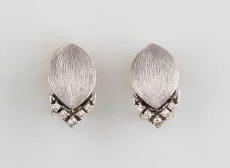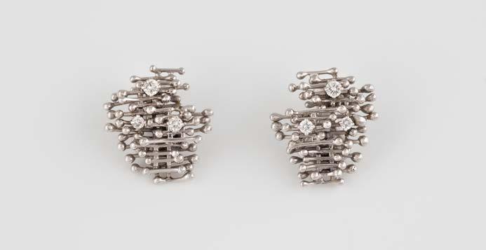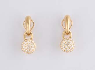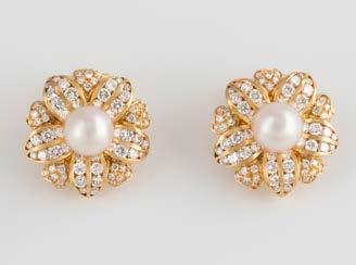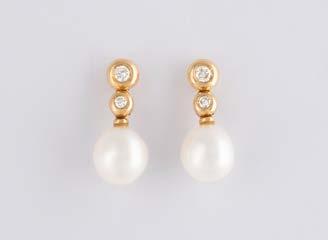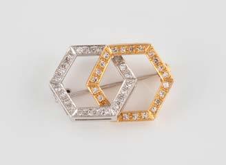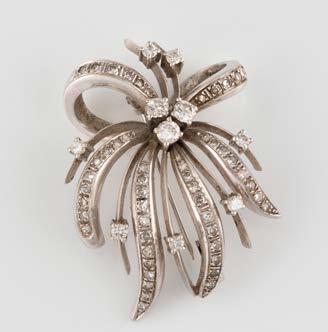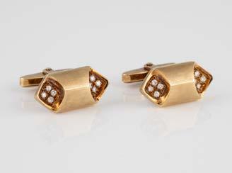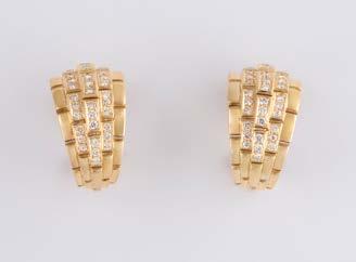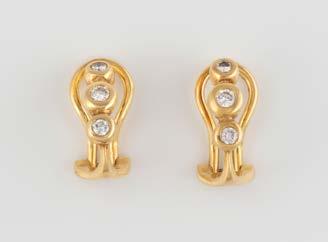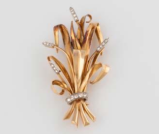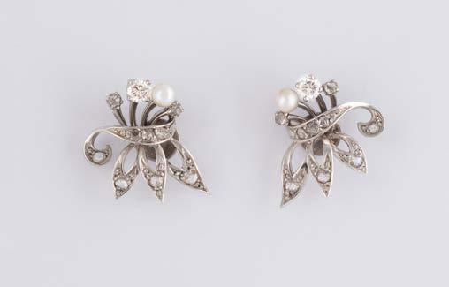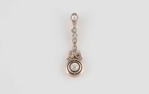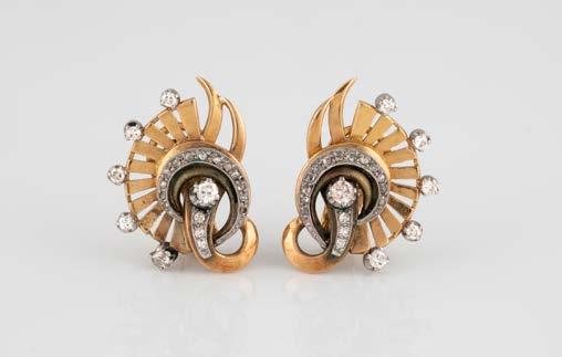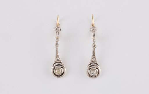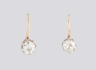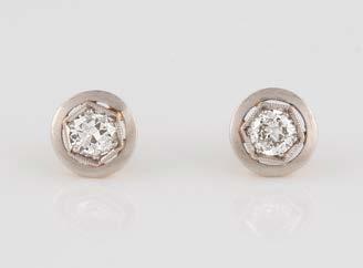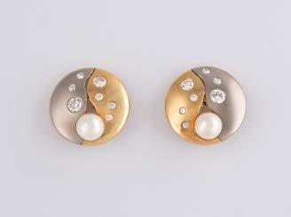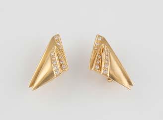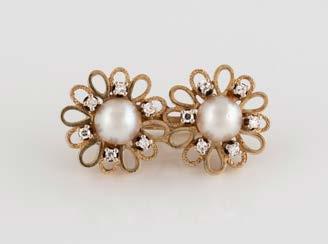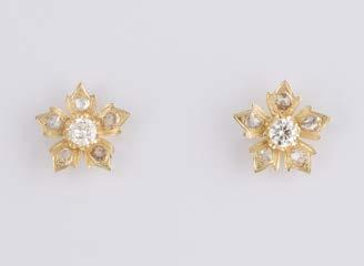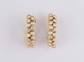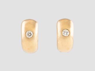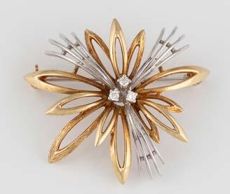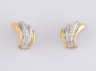 Gelbgold, Weißgold. L. 1,3 cm, Ges.-Gew. ca. 4,4 g. Gest. 585. Zusammen 60 Diamanten im 8/8-Schliff, zus. ca. 0,30 ct. Leichte Tragespuren.