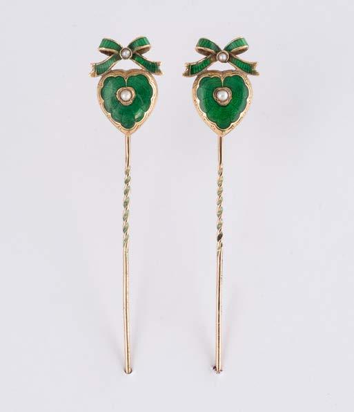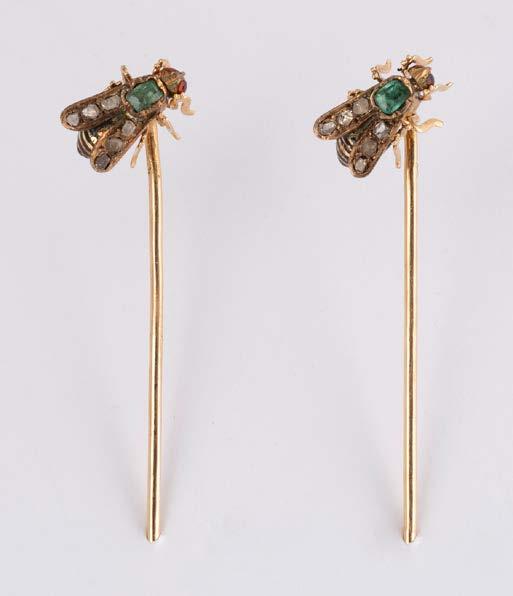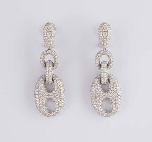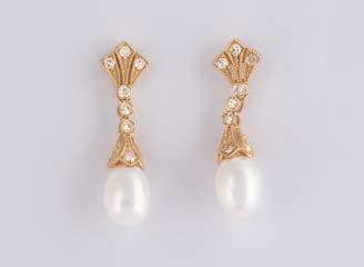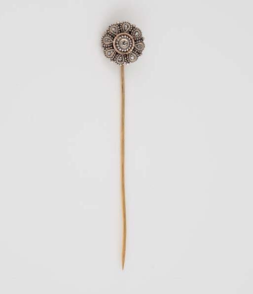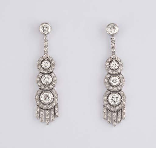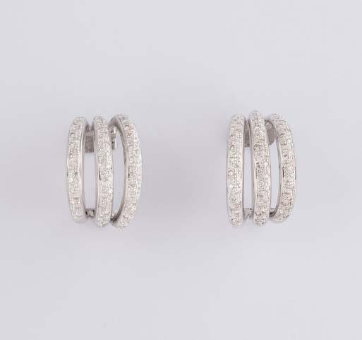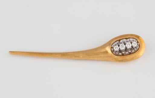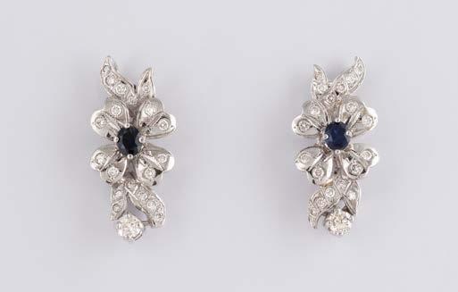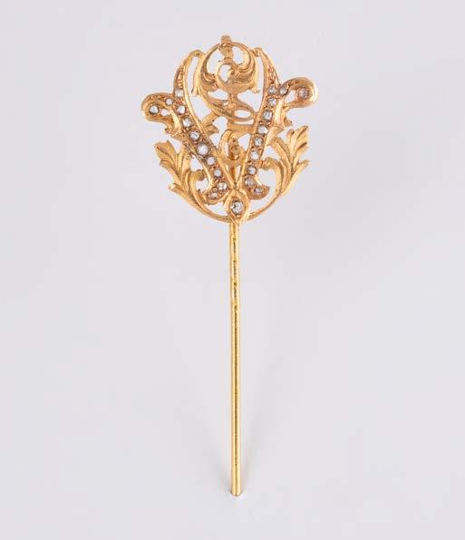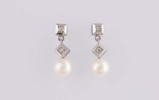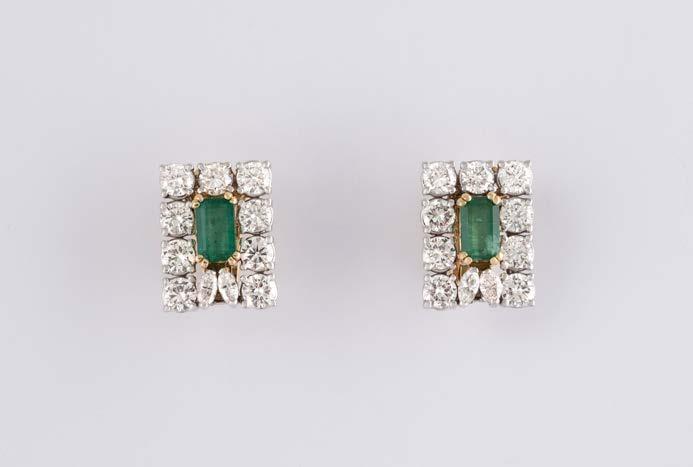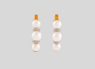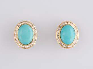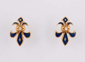Gelbgold, Weißgold. L. 1,3 cm, Ges.-Gew. ca. 4,4 g. Gest. 585. Zusammen 60 Diamanten im 8/8-Schliff, zus. ca. 0,30 ct. Leichte Tragespuren.