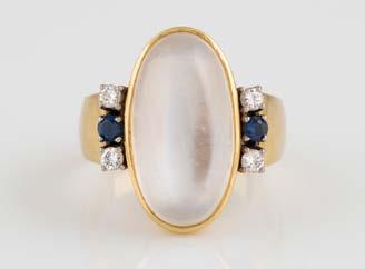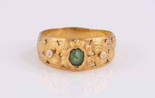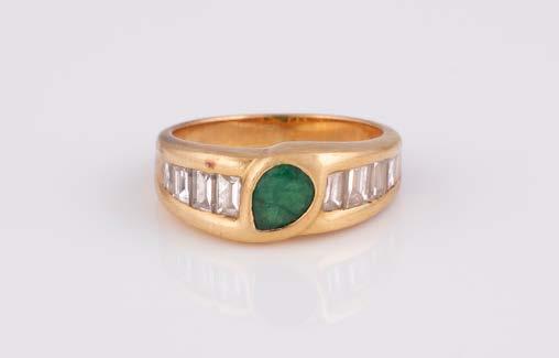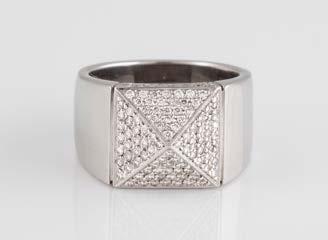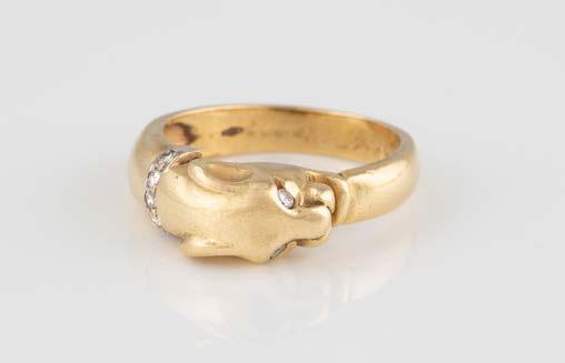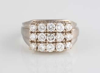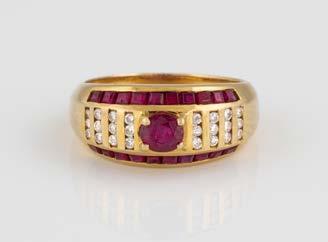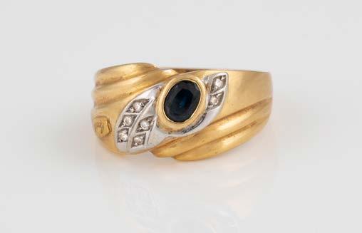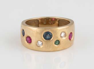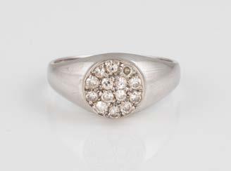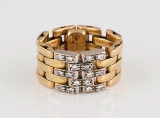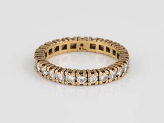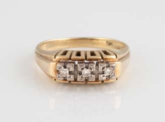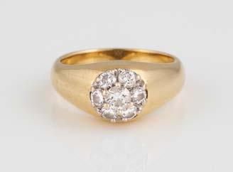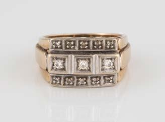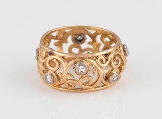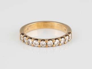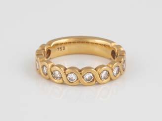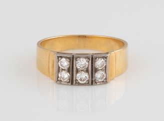Gelbgold. Ringmaß ca. 54, Ges.-Gew. ca. 13,1 g. Gest. 750. 16 Brillanten, zusammen ca. 0,16 ct. Leichte Tragespuren.