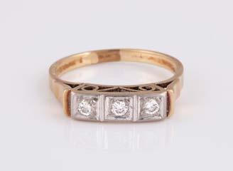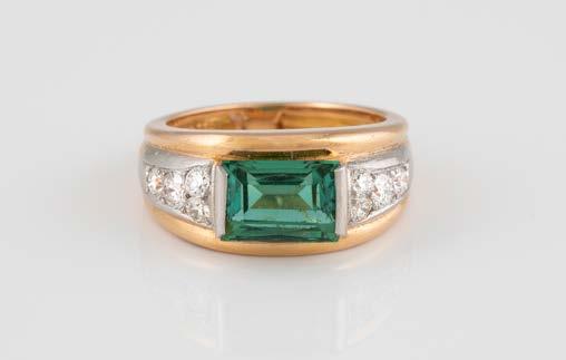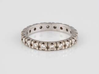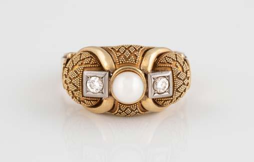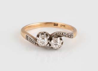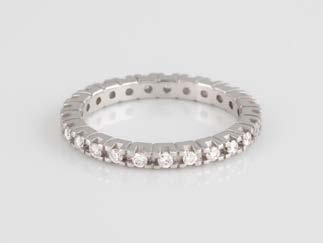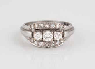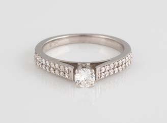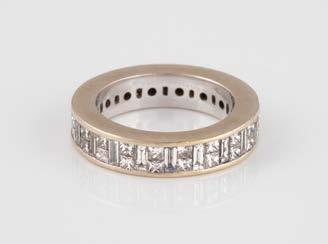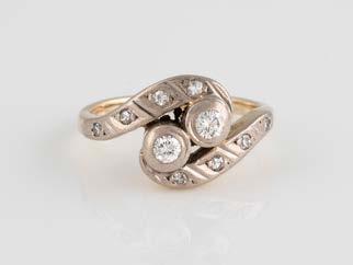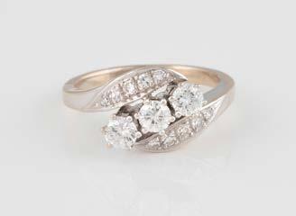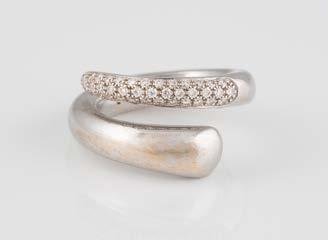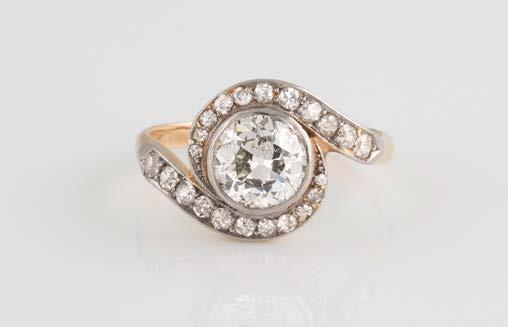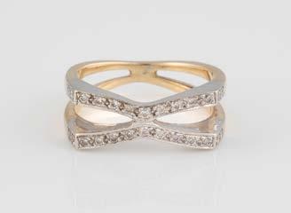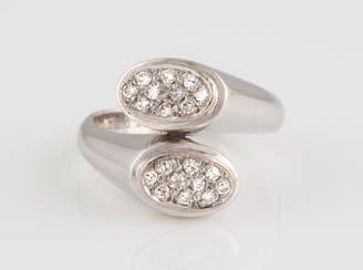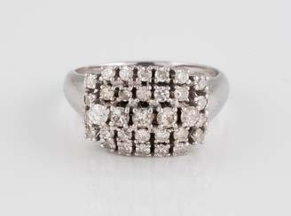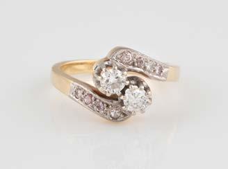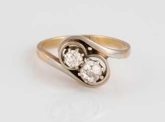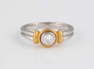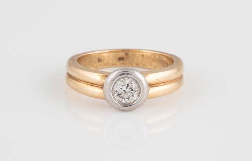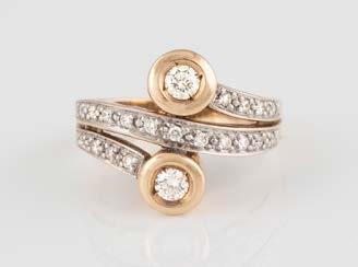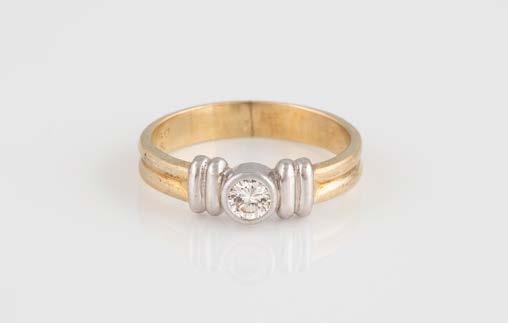 Gelbgold, Weißgold. Ringmaß ca. 54, Ges.-Gew. ca. 8,5 g. Gest. 750. 23 Brillanten, zusammen ca. 0,50 ct., etwa G-H VVS-SI.