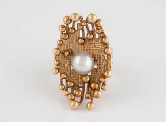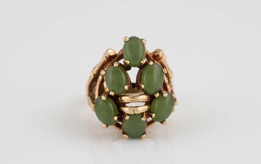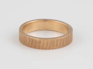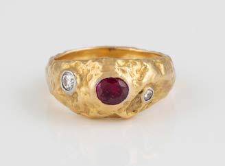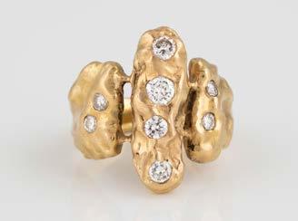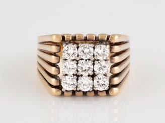 Gelbgold. Ringmaß ca. 61, Ges.-Gew. ca. 14 g. Gest. 585, Herstellersignet ‚JMP Juwelenmacher‘. Neun Brillanten, zusammen ca. 0,67 ct.