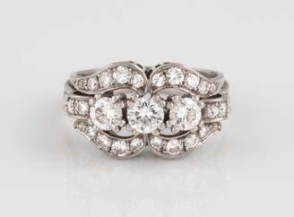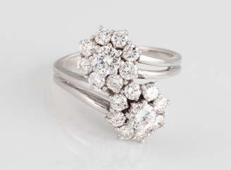 Roségold, Weißgold. Ringmaß ca. 60, Ges.Gew. ca. 8,5 g. Gest. 585. 44 Brillanten, zusammen ca. 2,64 ct., etwa G-H VS-SI.