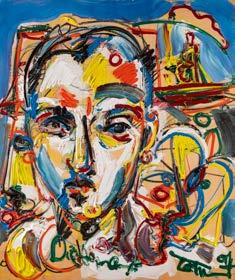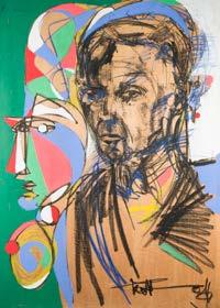 ö l auf Leinwand. 100 cm x 75 cm (R. 110 x 84 x 4 cm). Part. besch., Dellen. Rahmen.
