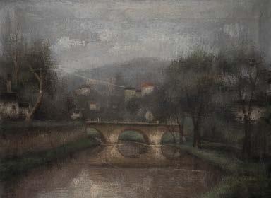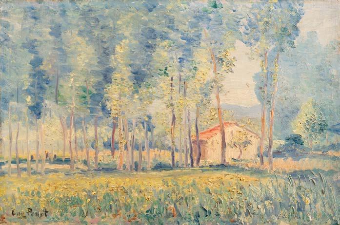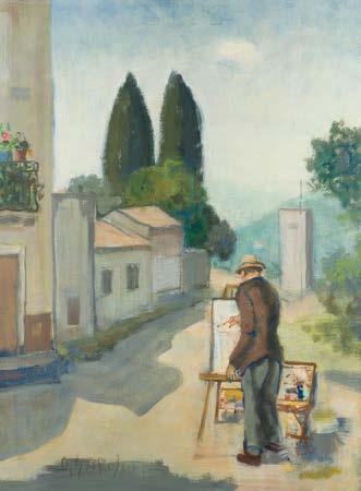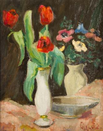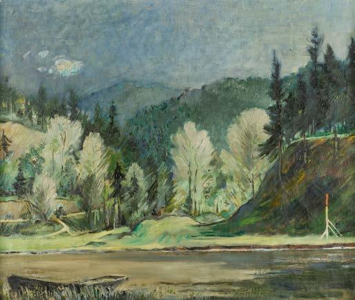 ö l auf Platte. 49,5 x 59 cm (R. 59 x 68 cm). Unten links unleserlich in Farbe geritzt signiert ‚Pierre Emile ?‘ und datiert ‚(19)41‘. Firniss vergilbt. Rahmen.