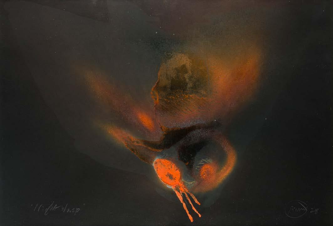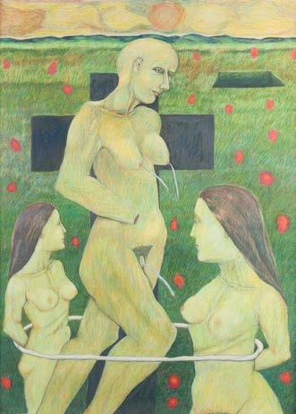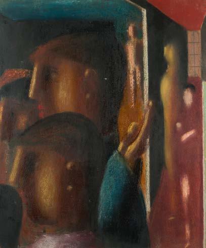 Pastell auf Leinwand. sM 58 x 36 cm (R. 67,5 x 45,5 x 3,5 cm). Unten links signiert und datiert ‚Curt Hoppe v. Camphausen 1920‘. Verso: Etikett der ‚Galerie Hete A.M. Hünermann, Düsseldorf‘. Hinter Glas gerahmt (ungeöffnet).
