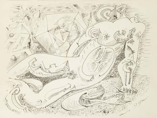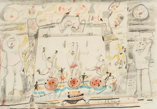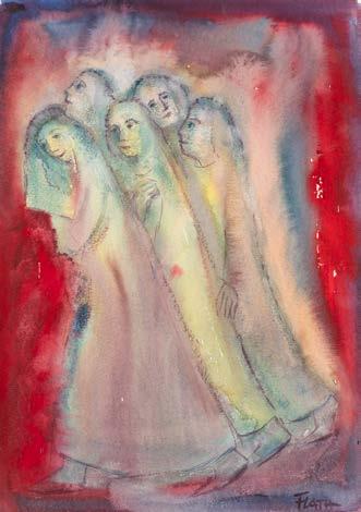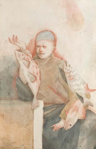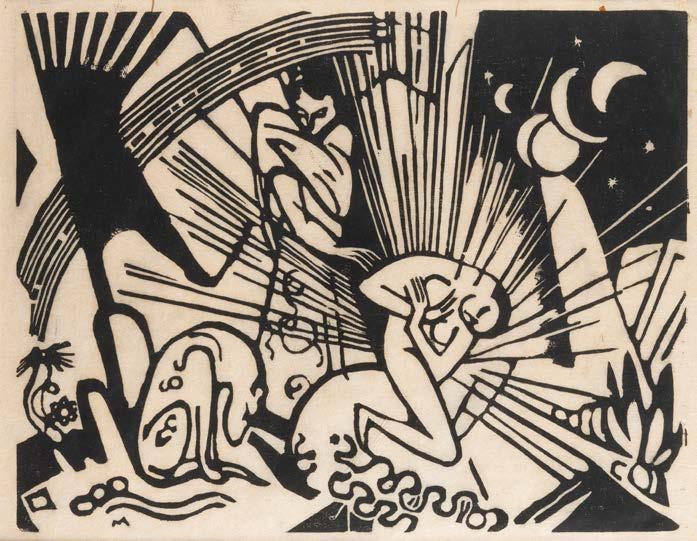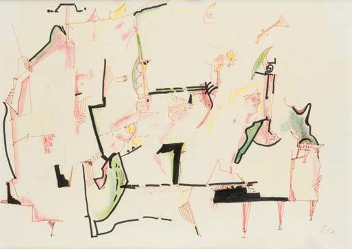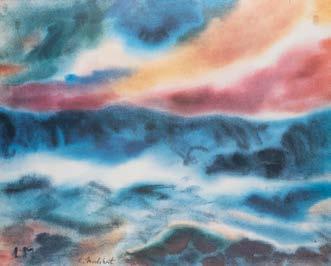 Mischtechnik auf Papier. sM 75 x 52 cm (R. 88 x 65 x 4,5 cm). Unten links signiert und datiert ‚Gustav Lüttgens Berlin 1923‘. Verso: Künstleretikett mit Echtheitsbestätigung. Gebräunt, part. mit Farbverlusten. Hinter Glas gerahmt (ungeöffnet).