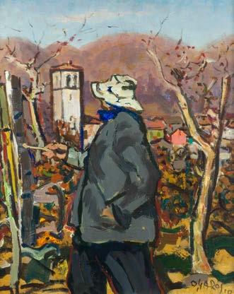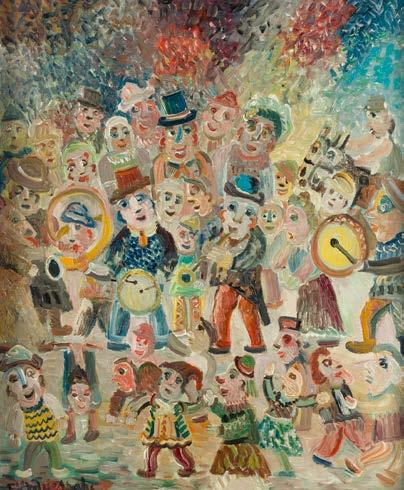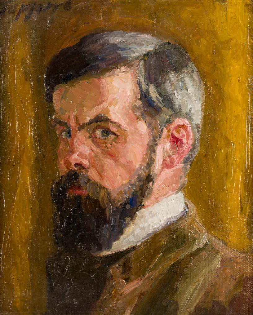 öl, Tempera auf Karton. 35,7 x 31,7 cm (R. 62,5 x 57 cm). Unten rechts signiert ‚G. Wollheim‘. Rahmen.
