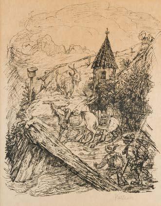 ö l auf Leinwand. s M 20 x 29 cm (R. 55,5 x 64 cm). Unten links signiert. Im Passepartout und hinter Glas gerahmt (ungeöffnet).