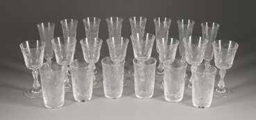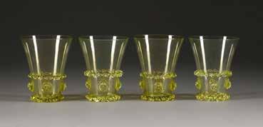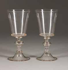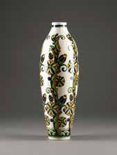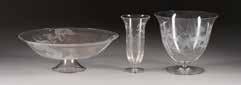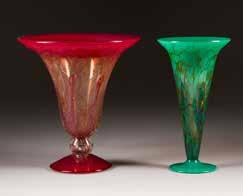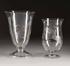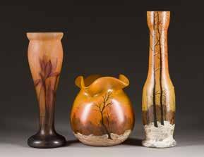 Farbloses Glas, farbige Emailbemalung. H. 19,5-36,5 cm. Bez. ‚Legras‘ und ‚Mado Nancy‘ (emailbemalt).