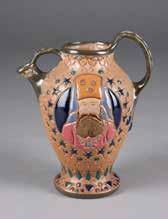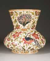 Ungarn, Pécs, Zsolnay, Ende 19. Jh. Keramik, polychrome Malerei, Goldstaffage. H. 26,5 cm. Unterglasurblaue Fünfkirchen-Marke mit ‚T. J. M.‘, Modellnr. ‚621‘, ‚ZW PECS‘ (undeutlich).