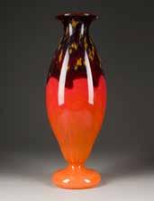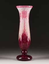 Farbloses Glas, farbige Pulveraufschmelzungen. H. 74 cm. Auf Wandung bez. ‚Daum Nancy‘ und Lothringer Kreuz.