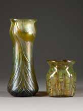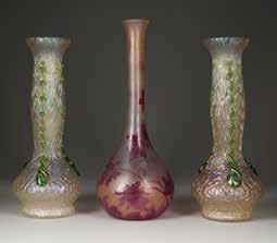 Böhmen/Frankreich, Klostermühle, Lötz Witwe/Verreries de St. Denis, Legras & Cie, um 1900 Farbloses Glas, grüne Auflagen, irisierend, weinroter Überfang, Ätzdekor. H. 36-40 cm. Teilw. bez. ‚Legras‘ (hochgeätzt). Dekor: ‚Nautilus‘, ‚Weinlaub‘, Serie ‚Rubis‘. Auflagen part. best., min. best.