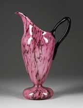 Frankreich, Nancy, um 1910 Farbloses Glas, grüner und rosafarbener Unterfang, grüner Überfang, Ätzdekor. H. 18 cm. Auf Wandung bez. ‚Gallé‘ mit Stern. Min. Gebrauchsspuren.