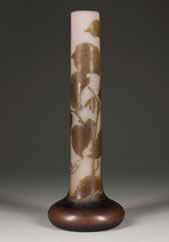 Farbloses Glas, brauner Überfang, rosafarbener Unterfang, Ätzdekor. H. 34 cm. Auf Wandung hochgeätzte Signatur ‚Gallé‘.