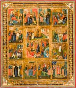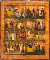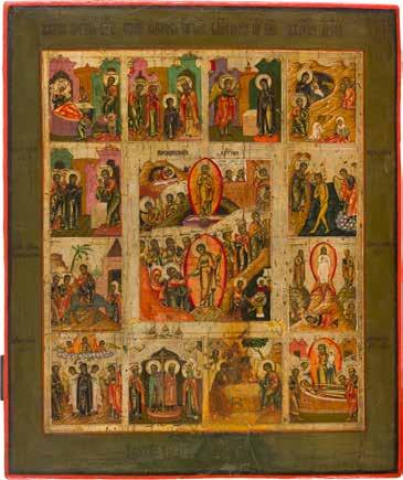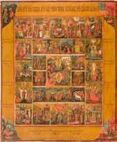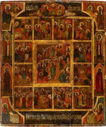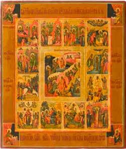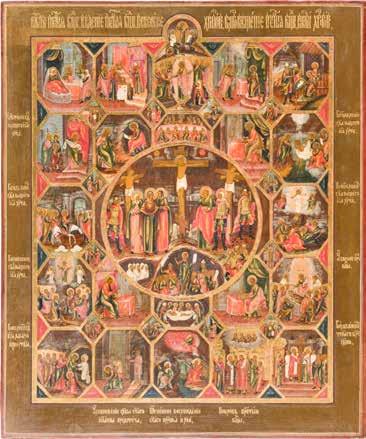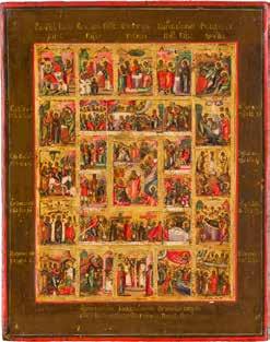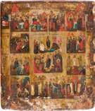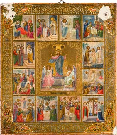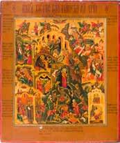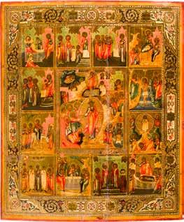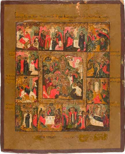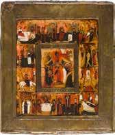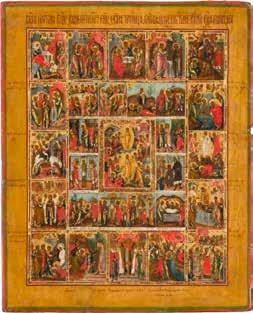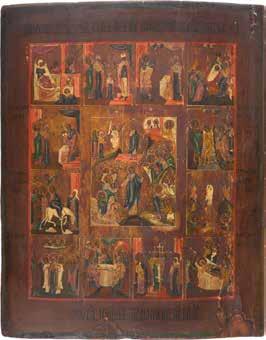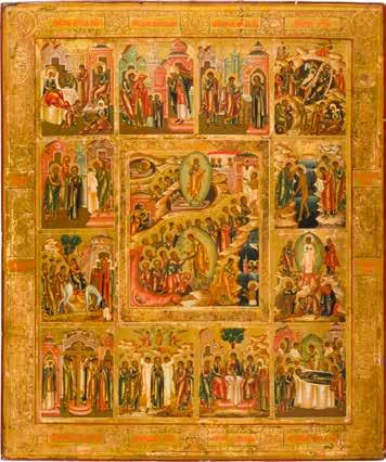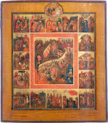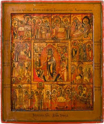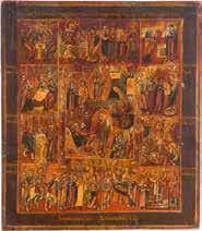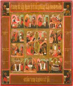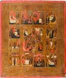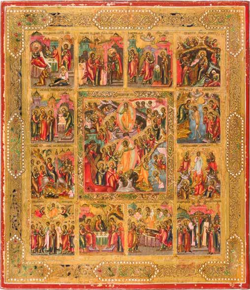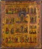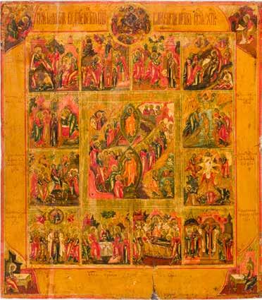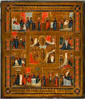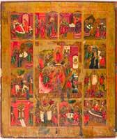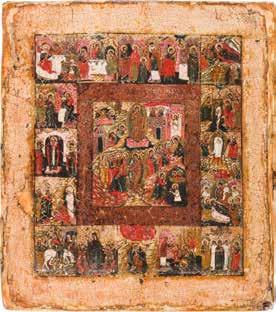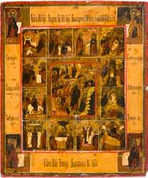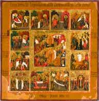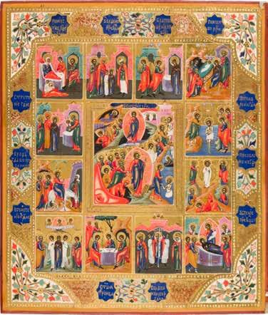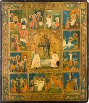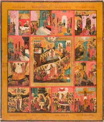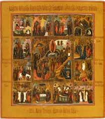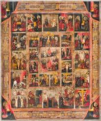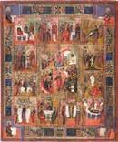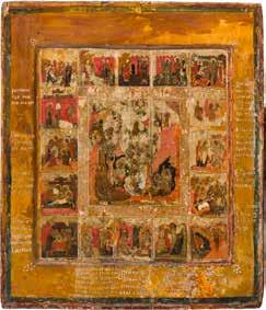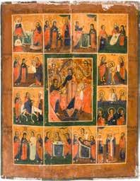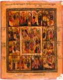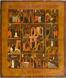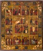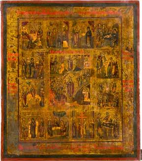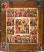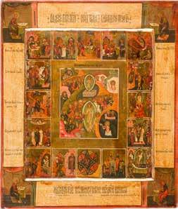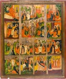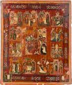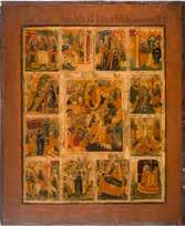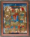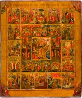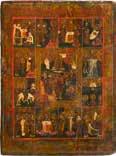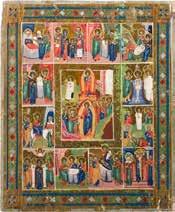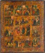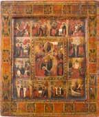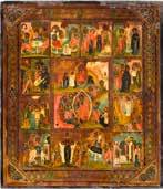 822 | IKONE MIT DER HÖLLENFAHRT CHRISTI UND ZWÖLF HOCHFESTEN DES ORTHODOXEN KIRCHENJAHRES