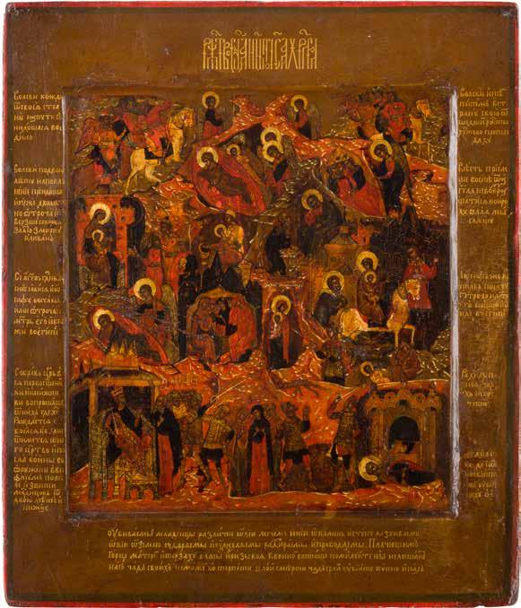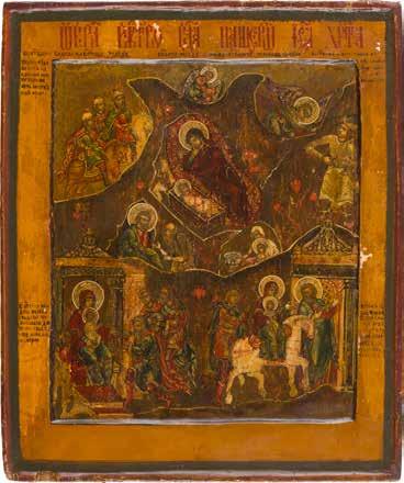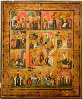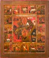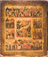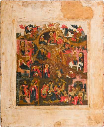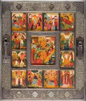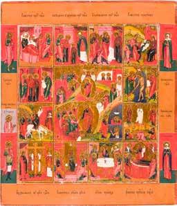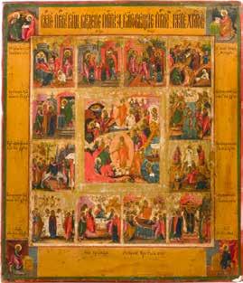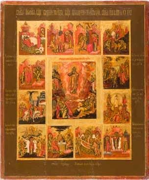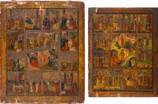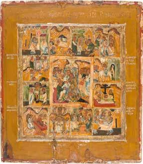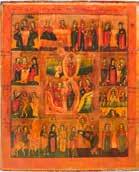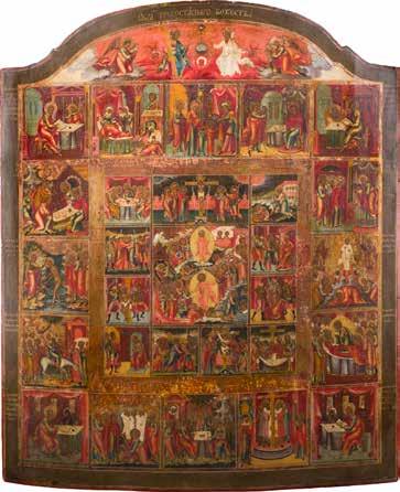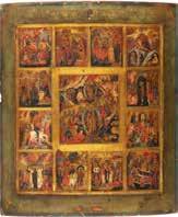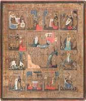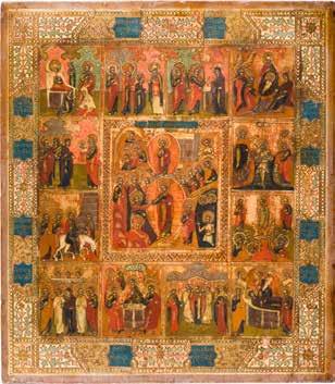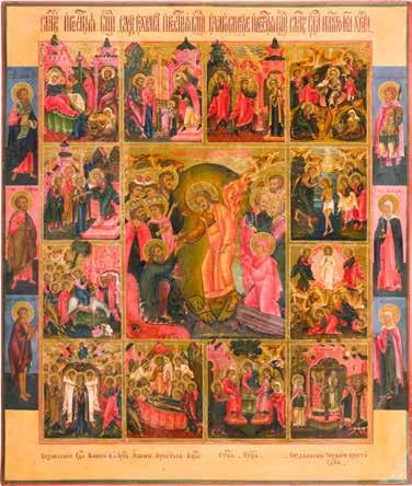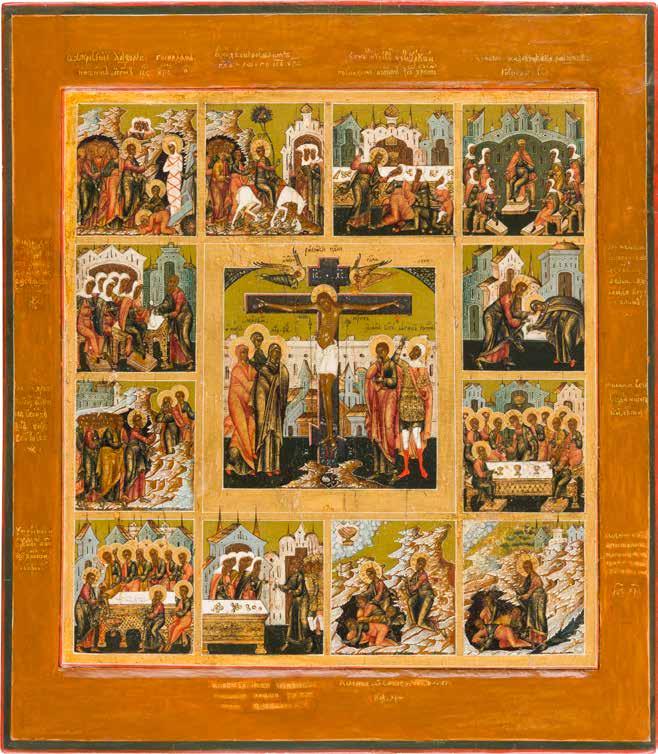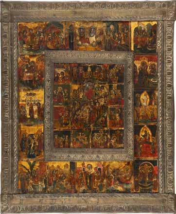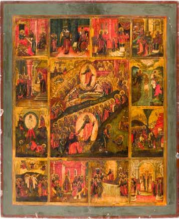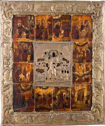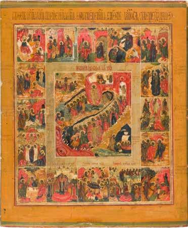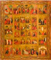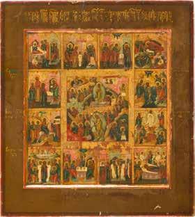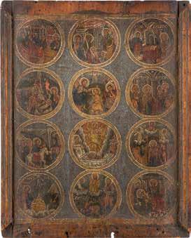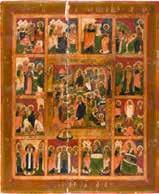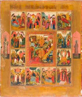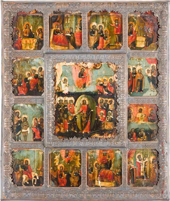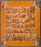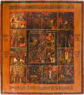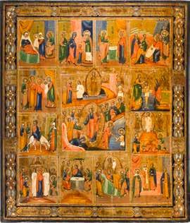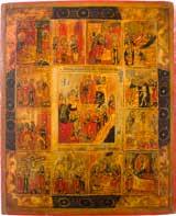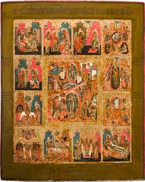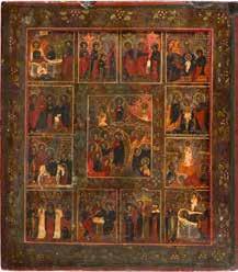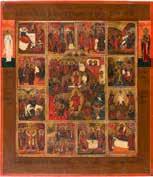 822 | IKONE MIT DER HÖLLENFAHRT CHRISTI UND ZWÖLF HOCHFESTEN DES ORTHODOXEN KIRCHENJAHRES