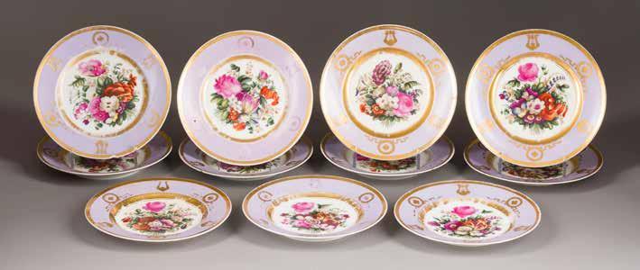 A SET OF ELEVEN PORCELAIN PLATES WITH FLOWER DECOR