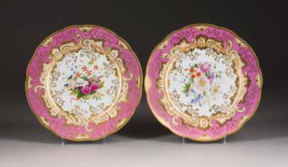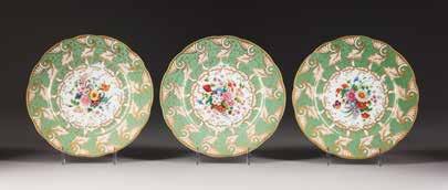 THREE PORCELAIN PLATES WITH FLORAL DECOR